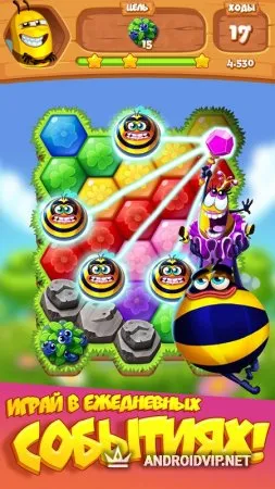 Игра Bee Brilliant Blast превращает вас в яркий мир под названием Пчеляндия, в котором вы познакомитесь с его замечательными жителями - пчёлками их детишками и пауками. Взрывайте цветастые соты, создавайте различные комбинации и получайте приятные бонусы и усиления. Здесь масса разнообразных режимов для прохождения и сотни увлекательных уровней. Управление очень простое, все действия осуществляются нажатием пальца.
