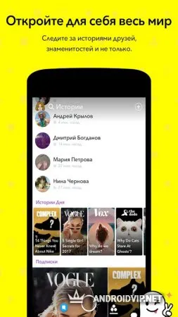 Snapchat / Снэпчат - популярное приложение, которое позволяет обмениваться сообщениями и прикреплять к ним фото и видеоматериалы. Создавайте ролики и снимки, делитесь ими с друзьями, отправляйте забавные bitmoji, стикеры и многое другое. Создавайте свои истории и следите за историями других пользователей. Смотрите, кто находится рядом с вами посредством геолокации и кто чем занят.