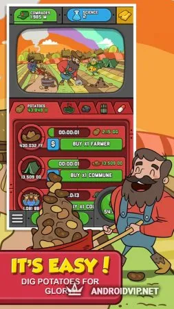 AdVenture Communist - игра от американских разработчиков с оригинальной задумкой. В этом кликере вы будете возводить своё процветающее коммунистическое будущее! Вспахивайте поля и занимайтесь выращиванием картофеля, добывайте руду и куйте из неё оружие. В отличие от других проектов схожего жанра, в AdVenture Communist всё сводится не деньгам, а к нескольким показателям, которые так или иначе имеют значение для вашего производства и влияют на него. Если вы всегда мечтали построить коммунизм и сколотить преданный рабочий коллектив - эта игрушка осуществит вашу мечту!