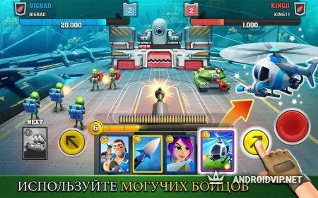 Mighty Battles - это качественная стратегия с приятной графикой для Android устройств, в которой вы возьмёте на себя обязанности командира своей армии. Ваша цель - ликвидировать вражеские отряды и базу, расположенную в противоположной от вас стороне. Стреляйте из огромной пушки и пускайте своих людей в атаку! Для победы необходима не только грубая сила, но ещё и грамотная расстановка юнитов и продуманная стратегия нападения и защиты. Если вы учтёте все эти важные факторы, ваша армия будет обречена на успех. За каждого ликвидированного врага вы получите на свой счёт очки. Они помогут увеличивать свой боевой отряд новыми бойцами и техникой.