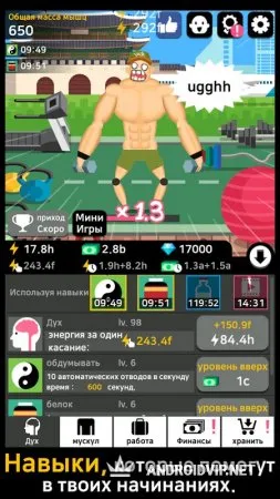 Хотите накачать красивую мускулатуру и ловить на себе восхищённые взгляды девушек? Muscle King - увлекательный симулятор бодибилдера, где с помощью кликов вы можете преобразить своего дрыщавого героя в огромного качка! Развивайтесь, методично используя различные упражнения и полезные навыки, зарабатывайте деньги и покупайте недвижимость! Станьте самым крутым, богатым и накачанным парнем в мире! Простая, увлекающая игрушка позволит весело скоротать свободное время.