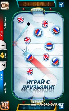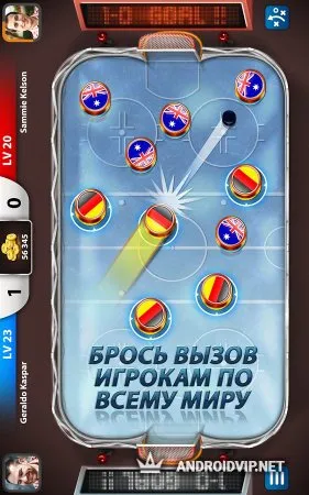 Hockey Stars на Андроид – новая мультиплеерная игра для мобильных устройств, которая порадует всех любителей и фанатов хоккея. Несмотря на простой геймплей, игровой проект достаточно интересный, веселый и эмоциональный. Игра не совсем похожа на настоящий хоккей и во многом напоминает керлинг. Все, что роднит ее с большим спортом – лед, двое ворот, шайба. Подключившись к Интернету, геймеры имеют возможность играть с реальными соперниками.
