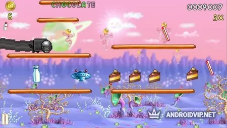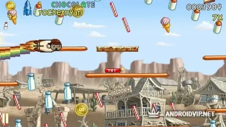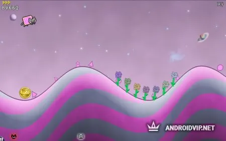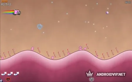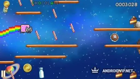 Nyan Cat: Lost In Space - это забавные приключения популярного на просторах YouTube кота-печеньки по имени Нян Кэт. В этой аркаде с его участием вы будете путешествовать по различным локациям - космосу, пустыне, лесу и помогать котейке собирать различные сладости: конфеты, торты, мороженое и молоко. Однако остерегайтесь злых чёрных котов, собак и инопланетян, всем им не по нраву наша затея. А справиться с натиском врагов нам помогут всяческие бонусы, например ракета или магнит.