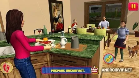 Virtual Mom : Happy Family 3D - это увлекательная игра, в которой геймерам нужно будет взять на себя все домашние обязанности типичной мамы в большой семье. Каждый день в вашем списке будет много дел, которые необходимо сделать. Приготовить еду, помыть посуду, отправить детей в школу, полить растения в саду, помыть машину и выгулять собаку - всё это лежит на плечах заботливой мамы, которой вы и собираетесь стать, не так ли? Приятная трёхмерная графика и атмосферные звуки, удобное управление и захватывающий геймплей с интересными заданиями, всё это затянет игроков надолго.