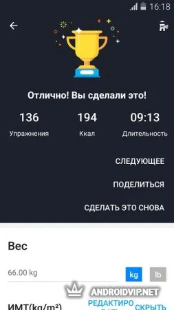 Более того, в приложении вы найдёте планы питания для наращивания мышечной массы. Самое главное в этом деле не лениться, соблюдать режимы тренировок, правильного питания и отдыха, и тогда вы обязательно будете довольны результатом. Установите приложение "Тренировки для дома" на своё Android устройство и начните меняться в лучшую сторону прямо сейчас!