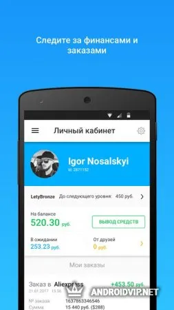 В вашем Личном кабинете вы увидите счёт, на котором будет отображаться сумма полученного возврата денег, а также статусы по покупкам. Вывести средства прямо из приложения можно на банковскую карту, мобильный телефон или электронный кошелёк.