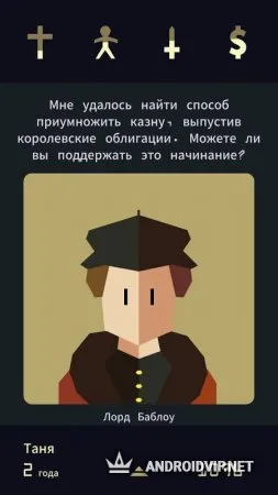Reigns: Her Majesty - это долгожданное продолжение хитовой игры от разработчиков из Техаса, в которой вы влияли на судьбы людей с помощью свайпов по экрану. Итак, за окном эпоха ренессанса, время просвещения и образования, однако ваши враги с их завистью и местью никуда не делись. Помешайте им завладеть вашей властью, будьте умнее и живее всех тех, кто посягнул на ваш трон. Решайте важнейшие вопросы государственного уровня во всех областях, принимайте взвешенные (или не совсем) решения, просто смахивая вправо или влево. Но помните, каждый ваш выбор будет так или иначе влиять на королевство. Будьте мудрым и сильным правителем, и тогда ваши жители будут вас любить, а враги сгинут навеки!