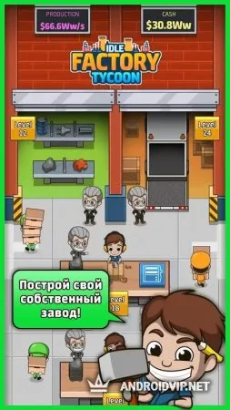 Всегда мечтали стать руководителем крупного завода? В игре Idle Factory Tycoon вы сможете осуществить свою мечту! Нанимайте рабочих для своего предприятия и наладьте процесс производства различных вещей, за продажу которых вы будете получать прибыль. Увеличивайте мощности путём приобретения новых станков, расширяйте отрасли производств и становитесь с каждым днём всё богаче!