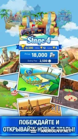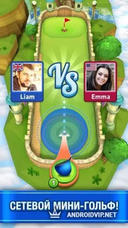 Mini Golf King - игра по сети - это увлекательный гольф, в котором вы можете посоревноваться в искусстве клюшки и мяча со всеми игроками планеты! Вашему вниманию предлагаются прикольные локации с пирамидами, разводными мостами, лабиринтами и не только. А управление в гольфе ещё не было таким удобным и лёгким: просто смахните и отпустите, чтобы замахнуться и выполнить удар по мячу. Прицельтесь максимально точно, чтобы собрать побольше кристаллов и быстрее достичь заветной лунки. Также можно забрать кристаллы соперника, если вы попадёте в его мячик. Если вы хотите отдохнуть после трудового дня и весело провести время, то эта игрушка вам точно подойдёт!
