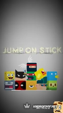 Jump On Stick - это аркада с нехитрым геймплеем, где вы, управляя забавным квадратным героем будете прыгать с одной платформы на другую. Главное здесь, не потерять концентрацию и не упасть вниз. Путешествуйте по различным локациям и открывайте новых персонажей, среди которых можно узнать "Рэмбо", радужного котейку Няна, Бэтмена и многих других.