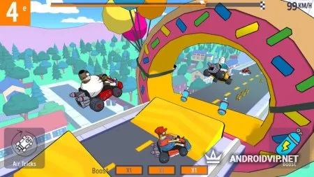Kart: Free Racing - это забавные гонки на картах, где каждый гонщик - известный персонаж. Сыграйте за Супер Марио, Гомера Симпсона, Железного Человека и других колоритных героев. Также вы можете выбрать один из 30 разнообразных картов. На трассе есть только одно правило: никаких правил! Разгоняйтесь на полную, прыгайте, дрифтуйте, тараньте соперников, в общем делайте всё, чтобы оставить конкурентов позади себя и финишировать первым.