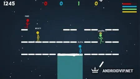 Stick Game: The Fight - это двухмерная игра для Android, где куча человечков на одной карте будут безжалостно уничтожать друг друга до тех пор, пока не останется кто-то один. Причём в ход идут как кулаки, так и всевозможное оружие - ножи, пистолеты, автоматы, и даже огромные базуки, способные разнести всё вокруг. Очень весёлая игра для нескольких человек с простым, но невероятно захватывающим и динамичным игровым процессом.