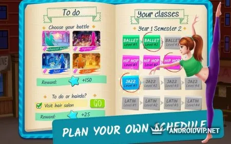 Есть ещё кое-что! Самый желанный парень Школы Танцев Сэм похоже влюбился в тебя! Замечательно, правда? Но есть один нюанс. Он уже состоит в отношениях с Викторией. Эта девчонка имеет скверный характер и у тебя могут появиться проблемы,если она узнает, что между вами что-то есть. Кстати, она очень круто танцует. Ну что, ты готова к танцам? Отчётное танцевальное шоу в конце года вот-вот настанет, нужно быть готовым к нему на все 100%! Готовься, тренируйся, верь в себя и, возможно, именно ты станешь лучшей танцовщицей!