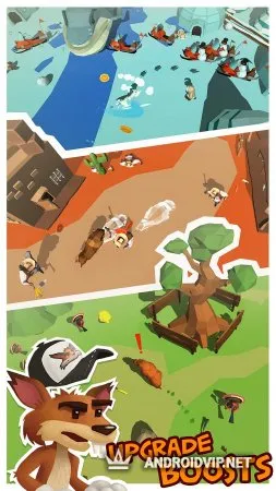 В игре всего пять персонажей: крокодил, кабан, лиса, лось, медведь. Игровая механика понятна и проста: необходимо управлять выбранным животным, атаковать противника, быстро перемещаясь по локациям, правильно использовать умения (бусты) своих персонажей. Управление бегущим по зеленой лужайке, лесным прериям, полям и другим локациям зверем происходит при помощи тапов по экрану. Совершая головокружительные маневры, ловко уворачиваясь от охотничьих пуль, дротиков, ловушек, избегая столкновения с опасными препятствиями необходимо безжалостно уничтожать «противников», не забывая собирать разбросанные по локациям бонусы, конфетки и другие полезности.