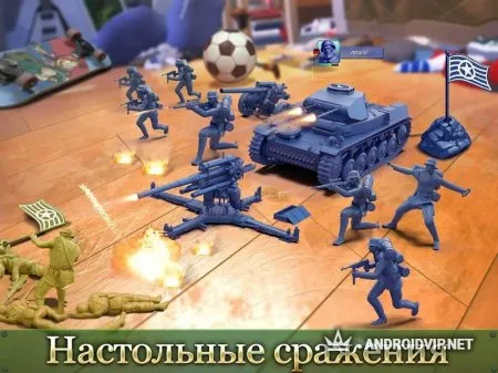 Army Men Strike - это необычная игра от разработчиков из Китая. Все мы в детстве любили играть с оловянными солдатиками и устраивать войнушки. А что, если они в миг оживут? Приглашаем вас на поле боя с ожившей армией игрушечных солдат! Создайте настоящую военную базу на территории своей комнаты, добывайте ценные ресурсы при помощи поезда, улучшайте свою пехоту, артиллерию, танки и вербуйте другие игрушки под своё крыло! Атакуйте врага не только силой, но и умом, при помощи хорошей стратегии.