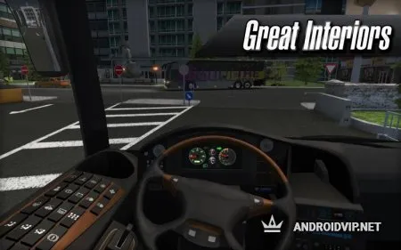 Управление автобусом осуществляется стрелками по экрану, виртуальным рулем, гироскопом (акселерометром). Помимо стандартного автоматического режима управления, можно выбрать более реалистичный с возможностью ручного переключения передач, использованием педали сцепления и газа. В игре есть смена вида камера. В кабине отлично реализована приборная панель, каждая деталь продумана и детально прорисована. Все стрелки, рычаги и индикаторы работают, есть зеркало заднего вида, можно включать/отключать дворники, поворотники, переключать ближний и дальний свет.