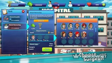 Менеджер больницы - Доктор и хирургия - отличная игрушка для любителей симуляторов менеджера. Здесь игрокам предстоит выступить в роли управляющего больницы, где вы по совместительству врач-хирург. Сделайте из своего медицинского учреждения лучший лечебный центр с полным спектром услуг, оснащённым новейшей техникой. Принимайте пациентов с различными заболеваниями и проводите качественное медикаментозное, физиотерапевтическое и хирургическое лечение. Игра выполнена в ярком стиле, разобраться в увлекательном игровом процессе сможет даже ребёнок, для которого, кстати говоря, данная игрушка послужит хорошим учебником по анатомии.