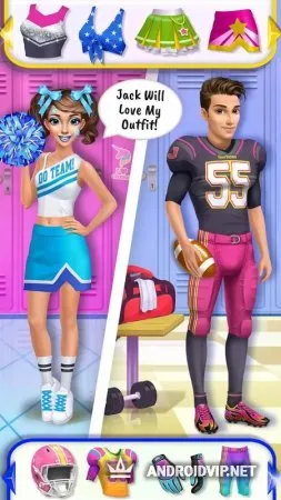Hannah's Cheerleader Girls - College Fashion - новый фэшн проект для девушек, в котором идёт речь об амбициозной героине, мечтающей стать лучшей чирлидершей. И вы ей в этом поможете, так ведь? Создайте для неё неповторимый образ: поработайте над макияжем и причёской для того, чтобы на спортивных мероприятиях со своей командой поддержки она была неотразима. А ещё помогите ей покорить сердце самого красивого парня школы, похоже она в него влюблена!