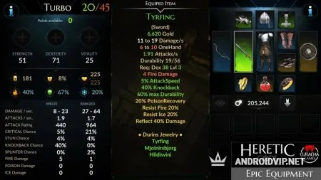 Качественная ролевая игра HERETIC GODS - Ragnarök приглашает вас в страну викингов, где вы будете управлять храбрым воином и очищать античные подземелья от легиона демонов. Собирайте редкие доспехи, оружие, снаряжайте ими героя. Соберите уникальные предметы и соберите коллекцию магических артефактов. Также не забывайте прокачивать древо навыков персонажа, чем выше его уровень, тем он сильнее. Если вы фанат таких классических RPG как Diablo, то вам обязательно понравится эта игра от разработчиков из Австралии. Они постарались взять всё лучшее из культовых ролевых игр. Ждите обновлений, скоро будет ещё больше редких вещей, врагов, боссов, квестов и навыков!