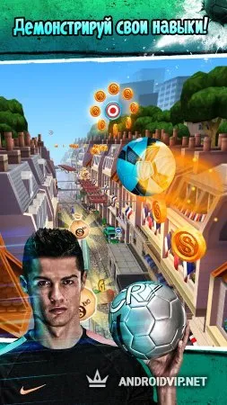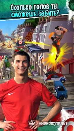 Игра Cristiano Ronaldo: Kick'n'Run понравиться фанатам футбола и будет интересна поклонникам знаменитого спортсмена. Можно просто бегать по улицам Парижа, преодолевая препятствия, бить мячом по целям, уклоняться от других футболистов, стремящихся прервать пробежку в подкате, ставить новые рекорды, улучшая свой результат, делиться своими результатами с друзьями. К сожалению, в игре присутствует донат, который существенно влияет на игровой процесс. За реальные деньги можно приобрести билеты, которые позволяют продолжить забег героя после поражения.