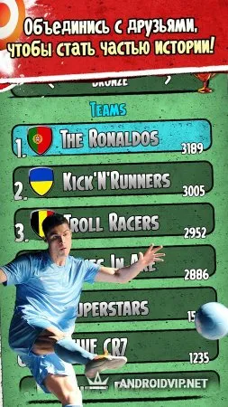 Cristiano Ronaldo: Kick'n'Run игра на Андроид, представляющая из себя футбольную аркаду-раннер, в которой игроков ждет встреча с известным футболистом Криштиану Рональду. Футбольная тематика в настоящий момент как никогда актуальна и в новой игре фанаты знаменитого спортсмена будут помогать футболисту в подготовке к Евро-2016.