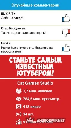 Понятие "блогер" уже никого не удивляет, а количеству денег, которые зарабатывают эти ребята на своих каналах, могут позавидовать даже высокопоставленные чиновники. Хотите примкнуть к рядам успешных блогеров, путь даже и виртуально? Качайте Симулятор жизни Ютубера - игрушку, где вы пройдёте путь от работяги до звезды YouTube.