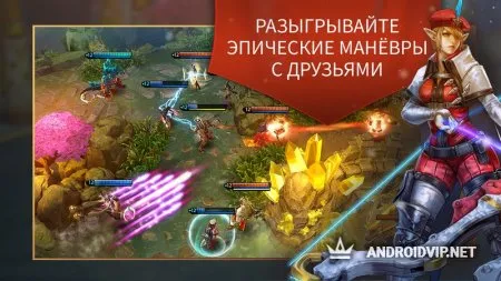 Выберите одного из магических героев и перемещайтесь на арены, где вас ждут захватывающие битвы в режиме реального времени. Вы можете проходить в одиночку или собраться компанией и биться вместе в режиме 5 на 5. Побеждайте врагов и открывайте различные улучшения и образы для персонажа. Создатели проекта ответственно заявляют, что их детище является единственным настоящим представителем жанра, и пожалуй, после нескольких минут знакомства с Vainglory 5V5 с ними можно согласиться.