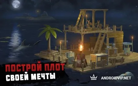 Необходимо мониторить жизненно важные показатели, а именно шкалы здоровья, жажды и голода, они должны быть в норме. Для этого можно ловить рыбу, готовить еду и запасаться водой. В океане помимо живности можно найти немало полезных предметов, используй крюк, чтобы притянуть их к себе. Это могут быть бочки, ящики и многое другое. Не пренебрегай этими предметами, они обязательно пригодятся. Не забывай обустраивать свой плот, а если места уж совсем станет мало, можно будет соорудить второй этаж.