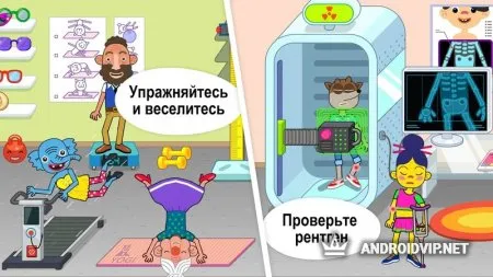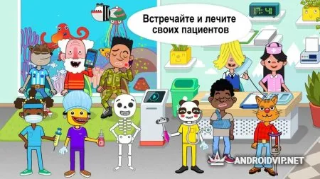 Pepi Hospital - увлекательная игра на Android, где вы узнаете, как работает развитый медицинский центр, а также сможете принять прямое участие в его работе - стать доктором или пациентом. "Скорая помощь" регулярно доставляет новых больных, которым нужна медицинская помощь. Сделайте всё, что от вас зависит, чтобы поправить их здоровье. Оденьте халат лаборанта и сделайте замер давления, создайте снимок рентгена. Создавайте комплекс необходимых упражнений для пациентов в качестве физиотерапевта. В игре десятки харизматичных персонажей: человечки, животные, различные монстрики и новый герой игры - робот Пэпи Бот - все они будут вам верными спутниками в изучении больницы.