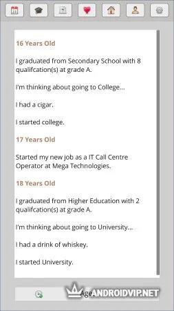 InstLife - это игра с необычной задумкой, в которой вы будете управлять жизнью случайного человека, и каждый раз будет уникальным. В ИнстЛайф перед вами будет множество вариантов развития событий: прожить скучную и однообразную жизнь без семьи, так и не получив высшее образование или найти себя в музыке и стать культовым музыкантом с миллиардными продажами альбомов, купающимся в деньгах и славе? Найти свою одну единственную любовь и прожить с ней всю жизнь или выбрать путь заправского бабника? Погрязнув в долгах, пойти на преступление или попытать счастья в лотерее?