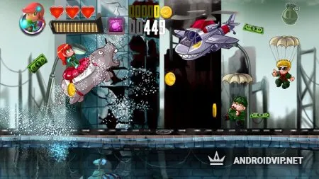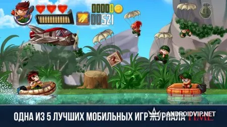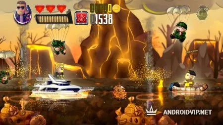 Ramboat - Jumping Shooter Game - классная игра, созданная трудом разработчиков из Genera Games. Она не имеет чёткой жанровой направленности, а сочетает в себе всего по чуть-чуть: и от раннеров, и от шутеров, и от аркад. Главное действующее лицо - отважный парень Мамбо, который вместе со своей командой убегает от разъярённых врагов, следуя по руслу реки на надувной лодке. Противники будут атаковать вас как с земли, так и с воздуха, но и вы серьёзно вооружены, в вашем арсенале есть всё - от пистолета до ракетницы и лазера.