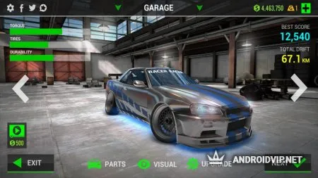 После нескольких побед можно будет всячески прокачать свою тачку: улучшить её ходовые качества, или поработать над внешностью. А если есть достаточно средств, то и вовсе приобрести новую машину. Проект может похвастать достаточно реалистичной моделью поведения авто на трассе, хорошей графикой, звуком и креативными картами, разработанными специально для любителей "валить боком".