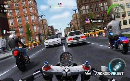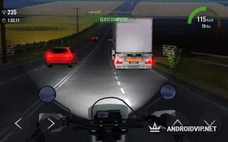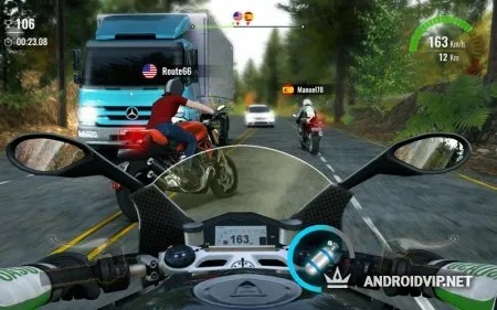 Moto Traffic Race 2: Multiplayer - это классные мультиплеерные гонки на мотоциклах, способные похвастать отличной графической составляющей и увлекающим геймплеем, где вам предстоит ездить на высокой скорости по различным трассам, обгонять соперников, а также постараться не совершить ДТП со встречным автомобильным потоком, так как гонки здесь проходят не на специальных для этого трассах, а на обычных, оживлённых шоссе. Вашему вниманию представлены несколько игровых режимов гонок, которые могут пройти как днём, так и ночью. Получите кайф от езды на престижных байках различных типов - кастомных моделей или классических. Зарабатывайте деньги и покупайте новые модели мотоциклов, пополняя свой гараж.