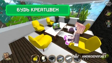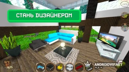 Всегда хотели иметь свой шикарный дом в живописном загородном уголке? В творческой игре для фанатов пиксельных песочниц Design Craft: Modern вы можете исполнить свою мечту! Создайте себе солидный особняк, уютный интерьер внутри дома, обставьте комнаты мебелью и техникой, приобретите красивую машину, на которой можно будет ездить. Находите блоки в подземельях и стройте самые разнообразные здания, знакомьтесь и общайтесь с другими героями.