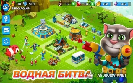Говорящий Том: водная битва - харизматичный котейка Том возвращается на экраны Android, чтобы вновь позабавить своих любимых игроков! На этот раз вы окунётесь в мир увлекательной стратегии в красочной стилистике предыдущих игр серии! Перво-наперво вам нужно построить свой лагерь. Возведите казармы, монетный двор, энергетический генератор и другие важные постройки, с помощью которых ваша база смогла бы существовать и развиваться.