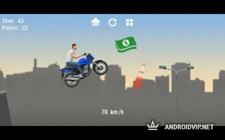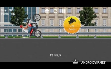 Moto Wheelie - это двухмерные гонки на мотоциклах из серии просто и со вкусом. Оседлайте именитые модели мотоциклов, такие, как BMW F 800 GS, Honda CB600F Hornet, Yamaha XJ6 и многие другие. Несмотря на 2D графику, байки и остальные детали прорисованы достаточно качественно. Гоняйте по разнообразным локациям, покоряйте трассы, здания и даже лестницы. Выполняйте крутые трюки и зарабатывайте очки и деньги, на которые вы сможете приобрести новые мотоциклы. Также перед началом игры вы можете настроить внешний вид гонщика - задать ему цвет волос, бороды или вовсе оставить лицо выбритым. А ещё можно выбрать для него костюм.