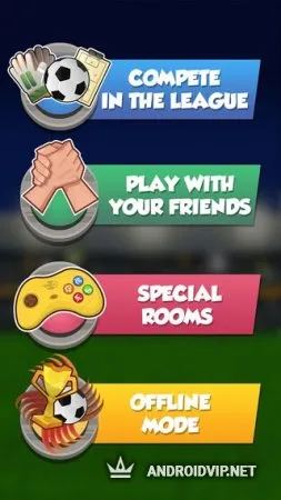 Online Head Ball - оригинальный футбольный симулятор на Андроид, главная фишка которого схватки 1 на 1 между причудливыми игроками с большой головой. Забей гол в рамку соперника, оставив свои при этом "сухими"! Используй различные суперспособности, чтобы застать соперника врасплох - огненный мяч, заморозка игрока, клонирование! Набирай очки и улучшай футболистов, покупая им снаряжение. В игре более ста персонажей, а аксессуаров к ним ещё больше: бутсы, головные уборы и многое другое. Реалистичные стадионы и отличный звук подарит чарующую атмосферу настоящего матча. Присутствует поддержка режима оффлайн, так что насладиться процессом можно и без интернета, а гибкие требования к мобильному устройству позволят играть даже на слабеньком смартфоне.