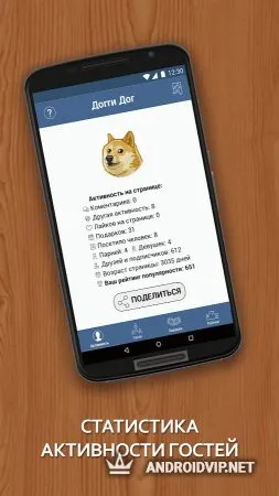 Приложение Гости Вашей страницы ВК позволит узнать, кто заходит на вашу страничку в VK. Для этого используется специальный алгоритм, отображающий подробную статистику просмотров. Также вы можете настроить специальную ловушку, которая может поймать любопытных пользователей и вы мигом узнаете, кто заходил к вам в гости. А ещё здесь можно активировать режим невидимки (активация происходит автоматом через 15 минут после того, как вы войдёте в приложение). В программе есть свой топ пользователей и топ их самых популярных фотографий, при желании вы можете возглавить этот рейтинг, благодаря чему вас заметят тысячи людей.