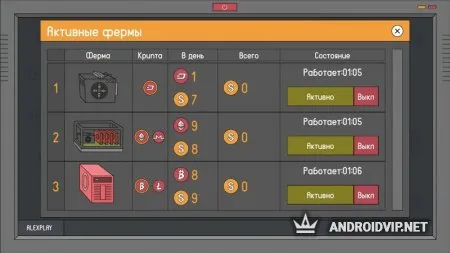 Симулятор майнера: добыча криптовалюты - это игра для тех, кого всегда интересовала тема биткоинов и криптовалюты в целом. В реальной жизни торговать на бирже всегда рискованно, а вот в игровой форме риска ноль, а азарта - море! У тебя будет несколько вариантов развития бизнеса: ты можешь заняться майнингом, принимать участие в биржевых торгах и зарабатывать на скачках курсов, а также можно перепродавать своё оборудование с фермы. В игре 5 видов криптовалют: всем известный биткоин, далее менее известные эфириум, дэш, лайткоин и монэро. Вы готовы покорить криптосферу и стать самым влиятельным человеком в этом деле? Тогда установите игру и постройте свою империю прямо сейчас!