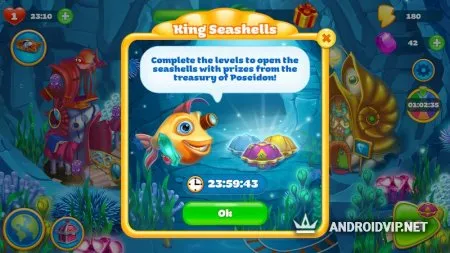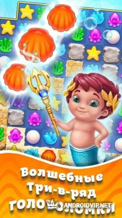 Seascapes : Trito's Match 3 Adventure - отличная головоломка "3 в ряд", которая отличная подойдёт для того, чтобы скрасить досуг всей семьёй! Отправляйтесь в невероятное приключение во времена богов и героев! Подводное королевство Посейдона в опасности: Морская Ведьма при помощи своих злых чар сломала королю трезубец, сделав владыку моря бессильным. Помогите сыну Посейдона Трито помочь отцу и спасти его царство от планов злой колдуньи!