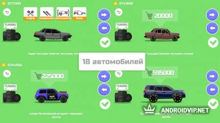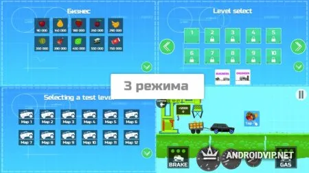 Выберите свой первый автомобиль, на котором вы будете выполнять разнообразные задачи. Каждая тачка строго уникальна, всего в игре их около 20-ти. Затем отправляйтесь непосредственно на участки с препятствиями. Набирайте скорость и проходите самые разные преграды типа кочек, ухабов и других объектов, не забывая при этом собирать монеты. При успешном прохождении вы получите на свой счёт денежную сумму, на которую можно приобрести новые автомобили и также заниматься их улучшением не только по внешней, но и практически любой технической части.