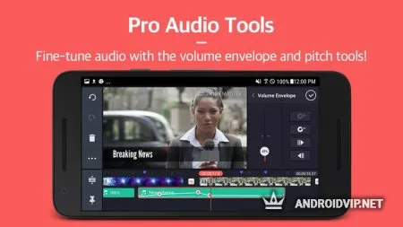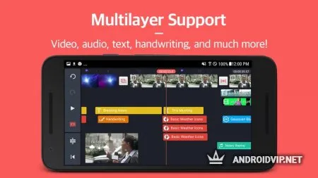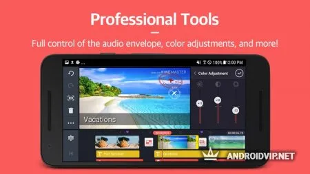 KineMaster – Pro Video Editor - это единственный в своём роде профессиональный редактор видео для мобильных устройств, который умеет работать с многослойными видеоматериалами, звуком, картинками и текстом. Также в его функционал входит обрезка и резка видео, наложение фильтров и другое. Отрегулируйте насыщенность видео, яркость и цветовой оттенок. Наложите размытие, моазику и ряд других популярных фильтров. Сделайте красивый переход с одного ролика на другой: затухание, салфетки и т. д.