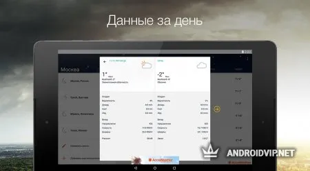 AccuWeather: Прогноз Погоды, Карты Погоды и Отчеты - это красивый виджет для вашего Android, который будет информировать вас о погодных условиях в данный момент, на сегодня, завтра и на 2 недели вперёд. Температура воздуха, осадки, сила ветра, влажность - все самые нужные показатели в режиме реального времени на экране вашего устройства благодаря высокоточного GPS-трекера и дождевого локатора. Также приложение оповестит о приближении дождя или шторма. Вы можете настроить отображение виджета по своему желанию с помощью гибких настроек.