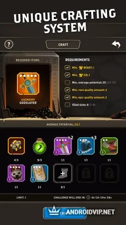 Интересен не только игровой процесс на полях боёв, но ещё и создание своего героя. Здесь вы сможете поработать внешностью персонажа (сделать ему густую бороду, длинные волосы, выразительные брови определиться с цветом глаз и многие другие параметры). Все игровые герои обладают набором индивидуальных навыков, которые применяются против соперников. Чтобы извлечь из них максимальную пользу, используйте их расчётливо и с умом. Также предусмотрена система крафта и прокачки персов.