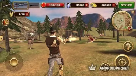 Оденьте своего героя по ковбойским понятиям, к вашим услугам восемь костюмов, детали которого можно совмещать друг с другом. Выбери крутые пушки из внушительного арсенала, насчитывающего более двух десятков видов.