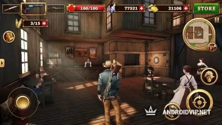 Игра West Gunfighter / Огонь с Запада приглашает вас в жестокий и опасный мир Дикого Запада, где только смелым и отважным удастся выжить. Кем вы станете - самым разыскиваемым убийцей или же благородным героем, стоящим на страже города? Сделайте верное решение и отправляйтесь исследовать полные тайн локации с различными персонажами.