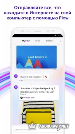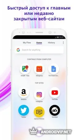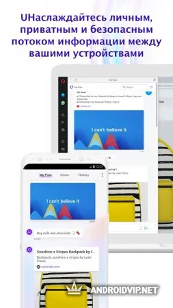 Opera Touch: новый быстрый браузер с функцией Flow - это свежая разработка от создателей "Оперы", которая позволит пользователям с ещё большим комфортом исследовать просторы всемирной паутины, а именно одной рукой. После запуска Опера Тач мгновенно готова к выполнению ваших запросов. Напишите или задайте поиск голосом и получите результат сию секунду. Также приложение быстро считает QR-код и сразу же направит вас на нужный сайт. А ещё оно умеет читать штрихкоды товаров и искать по ним информацию.