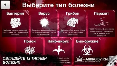 Оцените свои возможности в противостоянии всему Человечеству, создавая смертельно опасные вирусы и инфекции. Но помните – выживет только сильнейший!