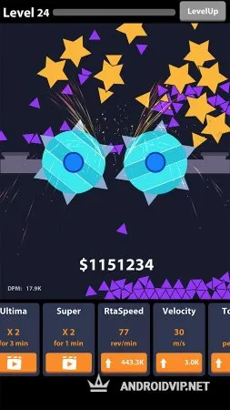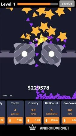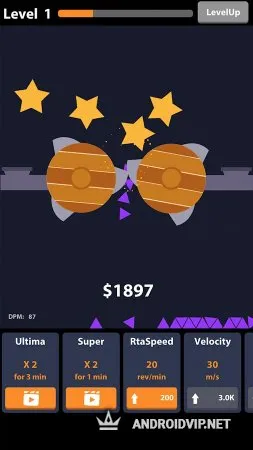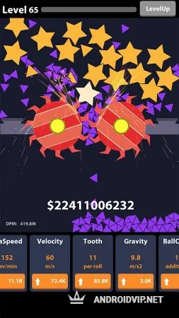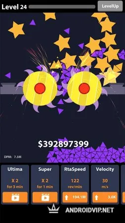 Super Crush Machine - это казуальная игрушка от Vega Crush, которая переводится, как "супер крушащая машина". Да, именно таким нехитрым устройством вы будете управлять, и ваша цель - нарубить, нарезать как можно больше падающих звёздочек на мелкие кусочки. Просто тапайте и наслаждайтесь процессом! Чем больше звёзд попадёт в вашу зловещую махину, тем больше вы сможете заработать вожделенных очков, которые можно потратить на улучшение машины, оснастив её более большими и более острыми лезвиями, которые будут кромсать всё, что попадает в их сокрушительные ловушки.