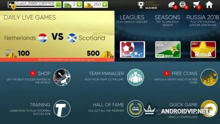 Stickman Soccer 2018 - встречайте свежий футбол со стикменами от Djinnworks GmbH, студии, которая уже известна геймерам выпуском подобных спортивных игр с участием этих забавных человечков. Погрузитесь в весёлый аркадный геймплей с удобным управлением и настоящим футбольным экшеном на поле, украшают который заряженная атмосфера и красивые видеоповторы. Любители этого вида спорта приятно удивятся количеству режимов игры, здесь можно начать проходить настоящий сезон или принять участие в разнообразных турнирах, в том числе и грядущем Чемпионате Мира по футболу 2018, который состоится в России.